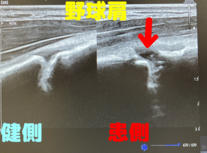 治療は、野球肩の回復を早める「骨折超音波治療器オステオトロン」と野球肩と関連する身体の弱点を強化と改善。