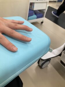 途中で指を曲げてしまうと治療期間が延長するため、患者様には固定の重要性を丁寧に説明しました。
