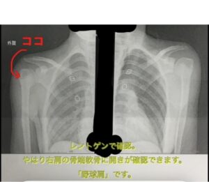 エコーで野球肩を疑う初見がみられレントゲン検査をしました。